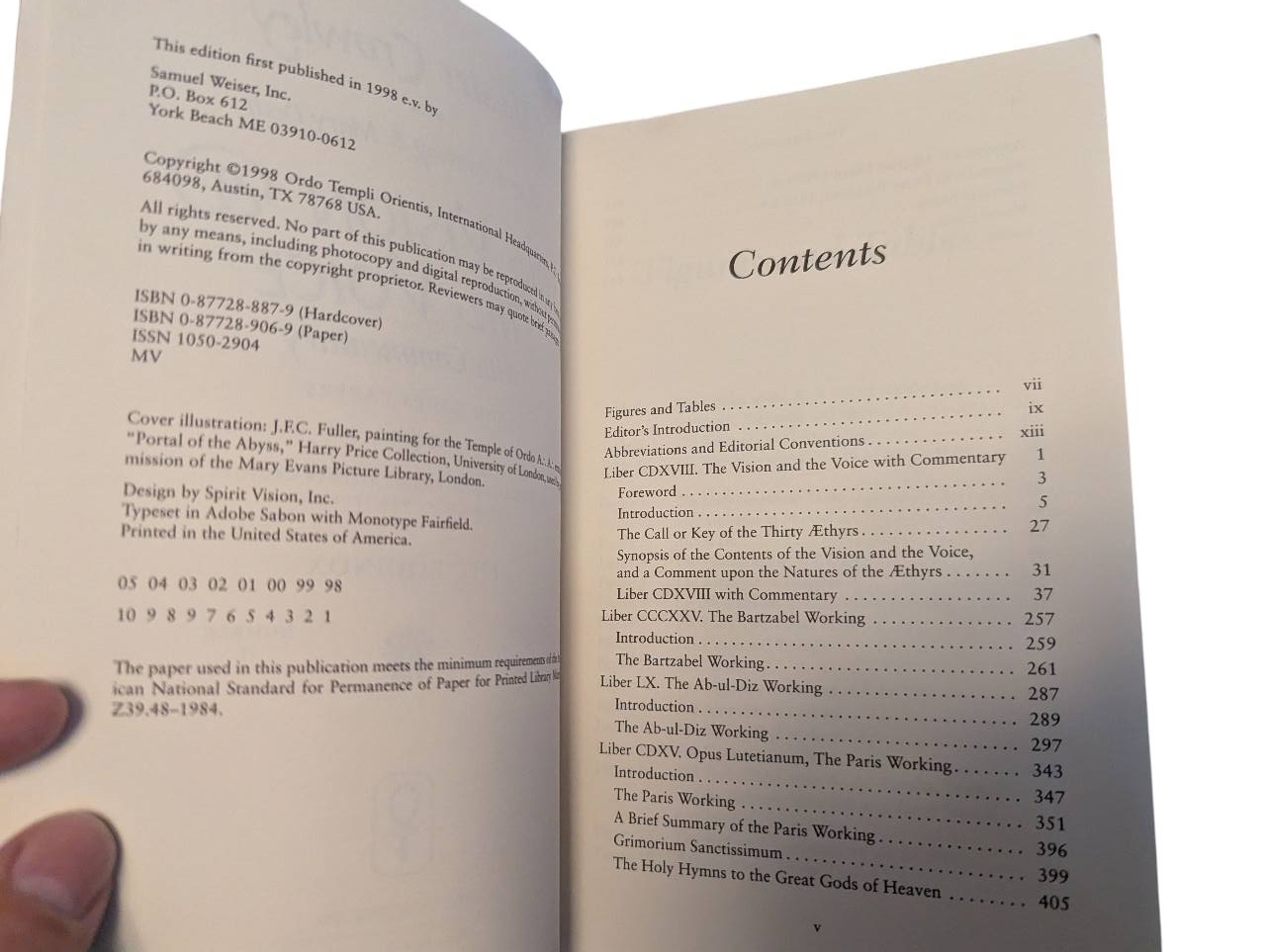 In 1909, Crowley received and wrote down his visions in the Sahara. In them, he gives an account of crossing the Abyss and attaining the grade of Master of the Temple. The core of this book is a record of his visions of the 30 Aethyres of the Enochian Magick developed by John Dee and Edward Kelley. It includes Crowley’s own diagrams and the original typescript of the Commentaries. There is also a record of Crowley’s magical work conducted with Victor B. Neuberg, and includes the “Esoteric Record of the Paris Working” as well as “The Holy Hymns to the Great Gods of Heaven”.